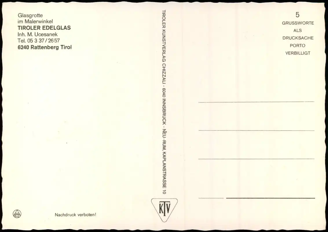 Verlag: TKV (KTV) - Tiroler Kunstverlag Chizzali, Innsbruck
