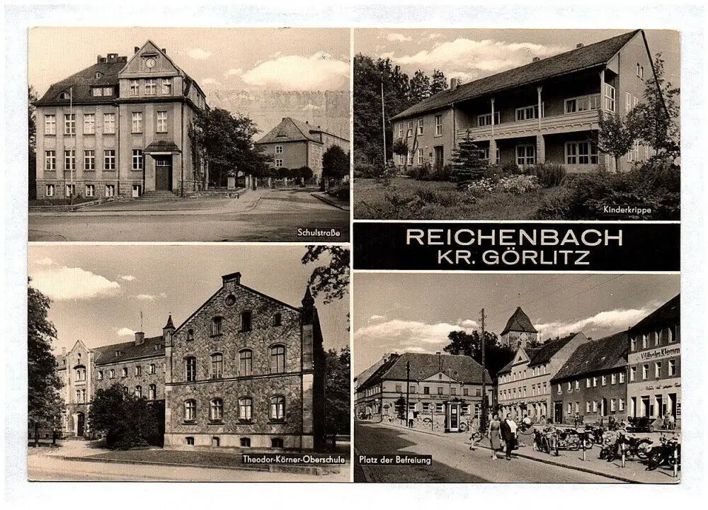 Ansichtskarte Reichenbach Kr Görlitz Schulstraße Kindergrippe Theodor Körner Oberschule DDR