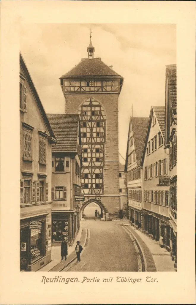 Ansichtskarte Reutlingen Partie am Tübinger Tor - Geschäfte 1914