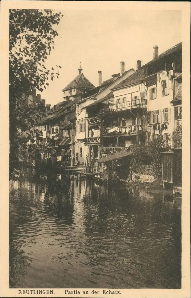 Ansichtskarte Reutlingen Partie an der Echatz 1913