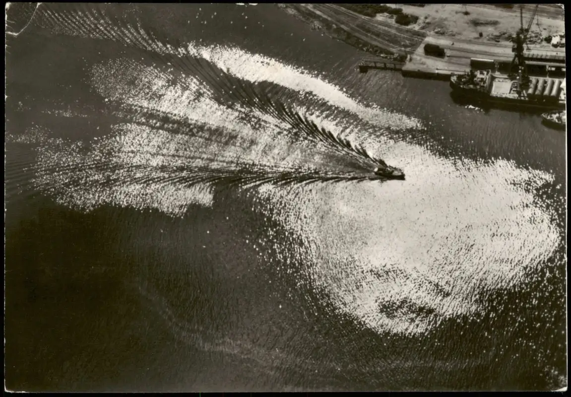 Ansichtskarte Rostock Luftbild Hafen Motorboot 1966