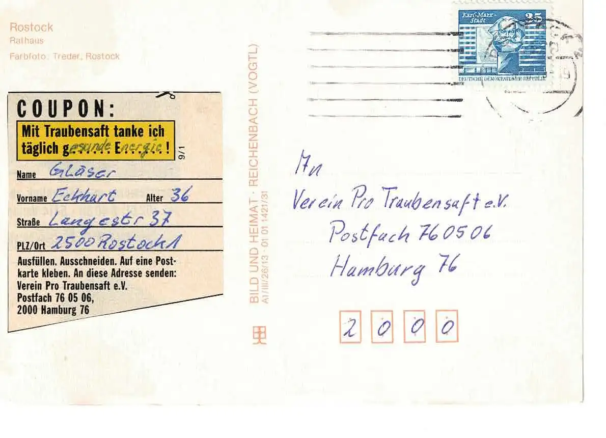 Ansichtskarte Rostock - Rathaus - gelaufen