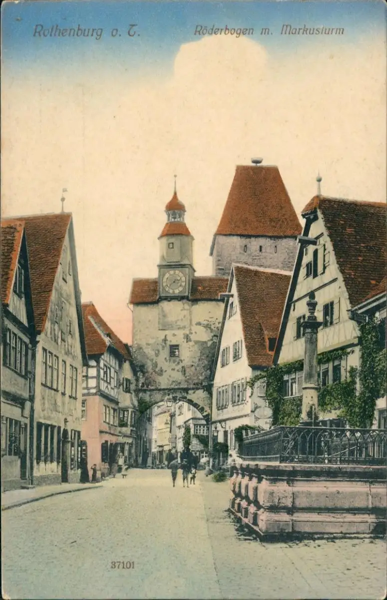 Ansichtskarte Rothenburg ob der Tauber Röderbogen m. Markusturm 1908
