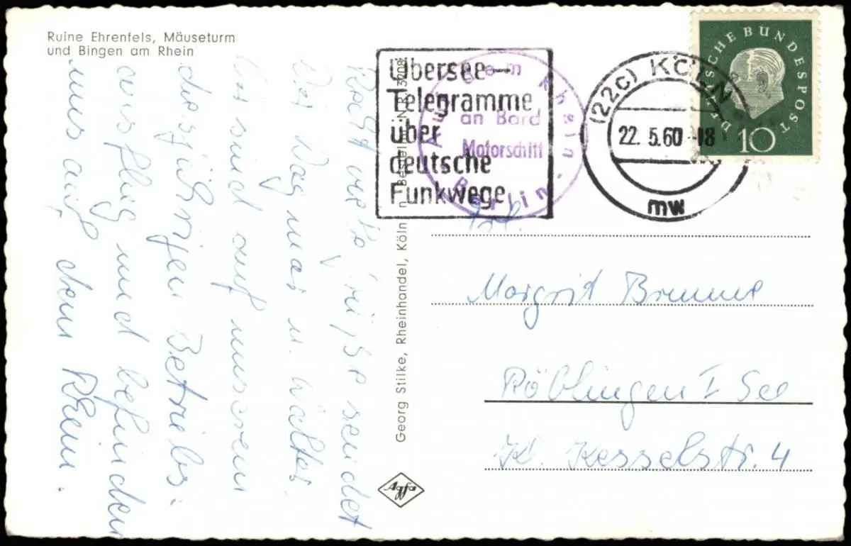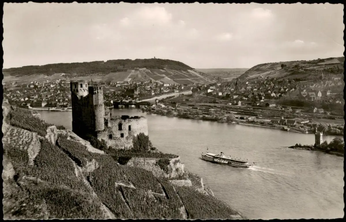 Ansichtskarte Rüdesheim (Rhein) Burg/ Ruine Ehrenfels - Dampfer 1960