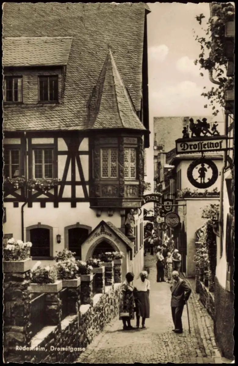 Ansichtskarte Rüdesheim (Rhein) Drosselgasse 1956