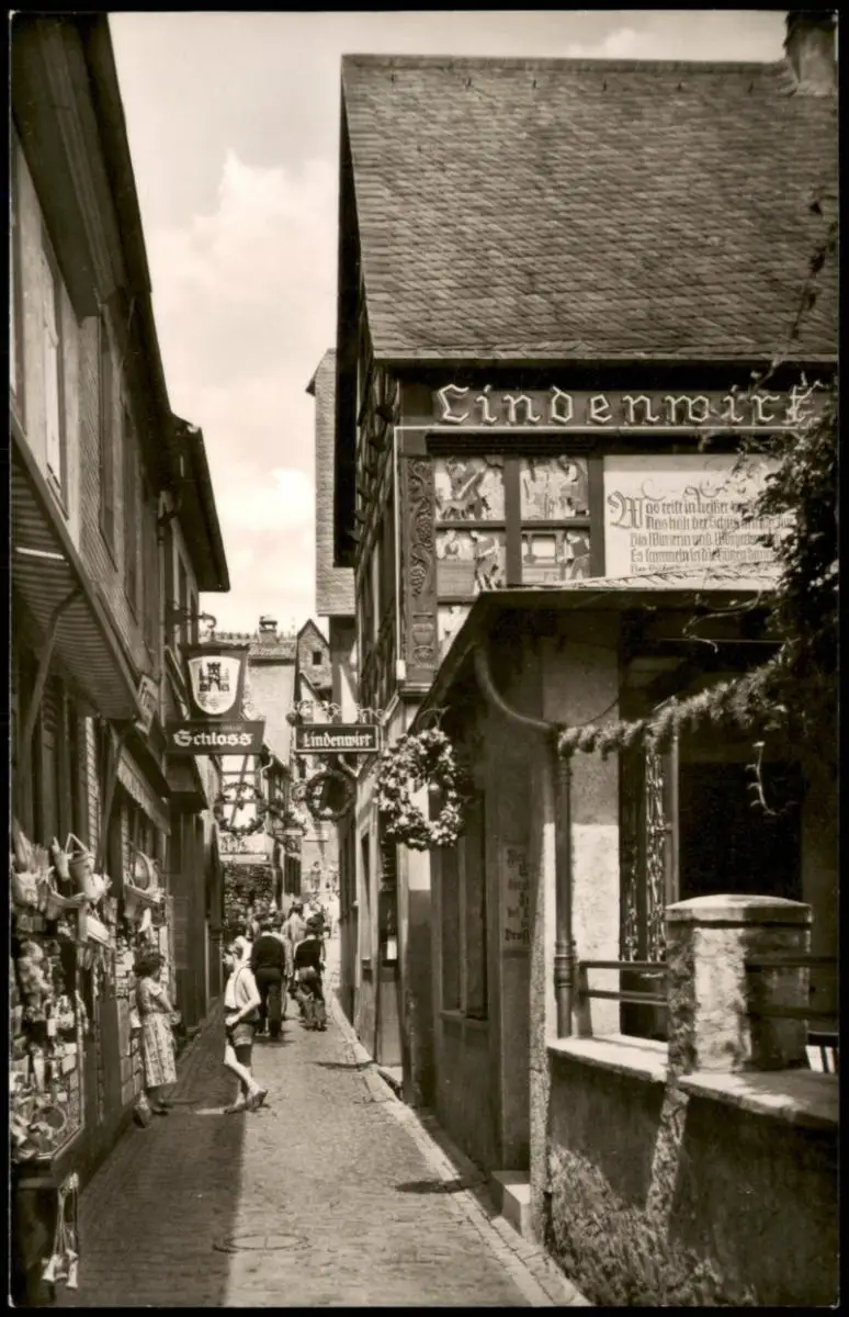 Ansichtskarte Rüdesheim (Rhein) Drosselgasse, belebt 1962