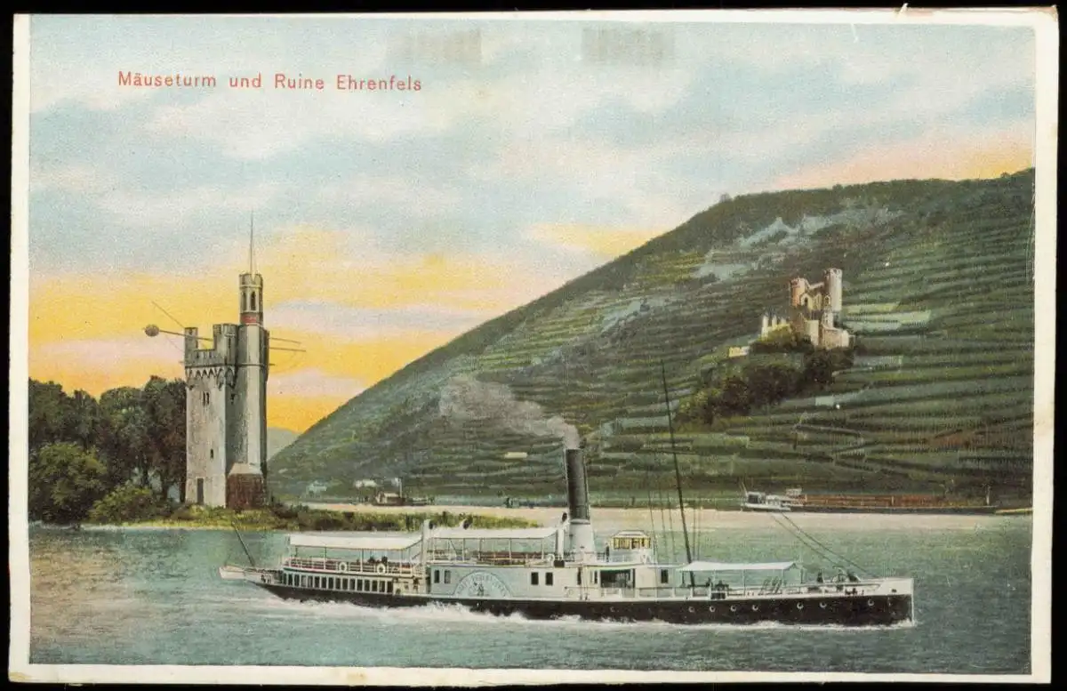 Ansichtskarte Rüdesheim (Rhein) Mäuseturm und Ruine Ehrenfels 1907