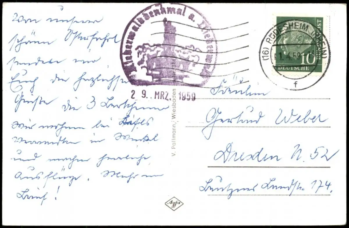 Ansichtskarte Rüdesheim (Rhein) Niederwalddenkmal 1959