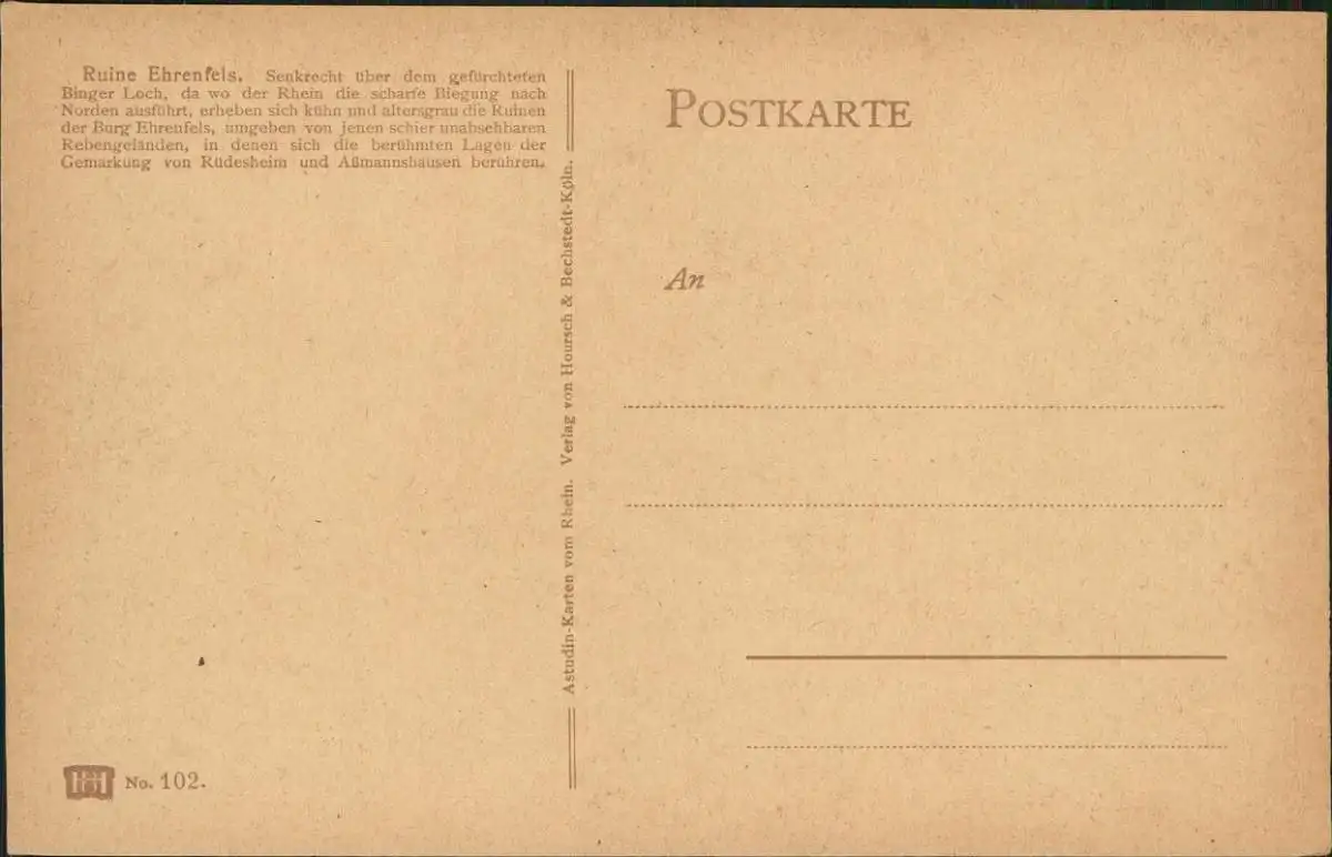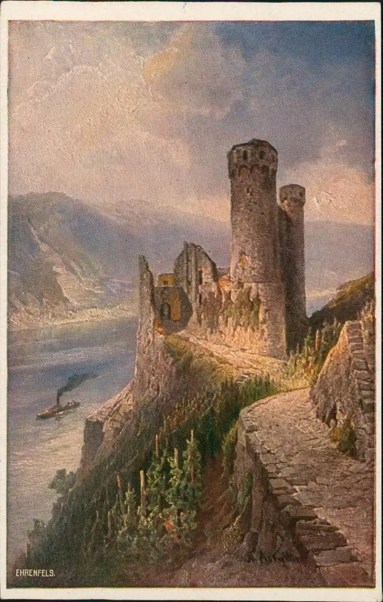 Ansichtskarte Rüdesheim (Rhein) Ruine Ehrenfels Künstlerkarte 1914