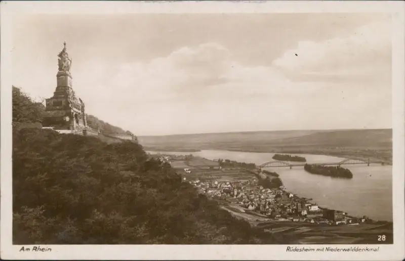 Ansichtskarte Rüdesheim (Rhein) Stadt mit Nationaldenkmal 1929