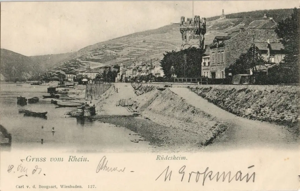 Ansichtskarte Rüdesheim (Rhein) Stadt und Straßenpartie 1908