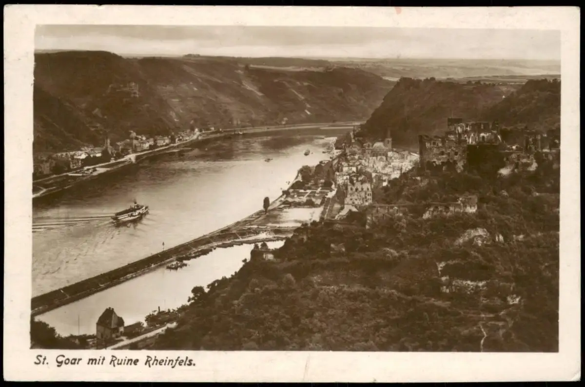 Ansichtskarte Sankt Goar Ruine Rheinfels - Stadtblick - Dampfer 1916