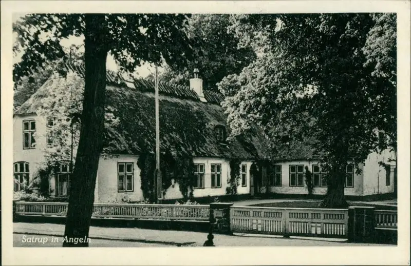 Ansichtskarte Satrup Straßenpartie und Haus 1932