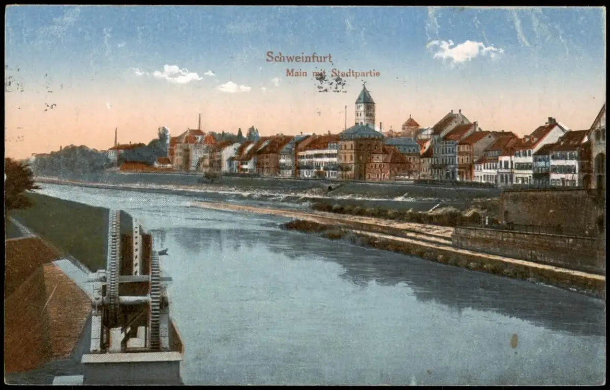 Ansichtskarte Schweinfurt Main mit Stadtpartie 1918 gel. Feldpost