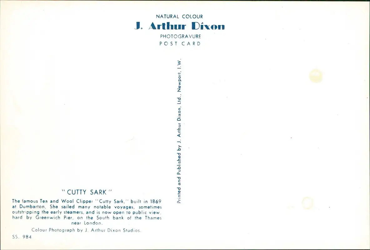 Ansichtskarte Segelschiff Wool Clipper CUTTY SARK 1960