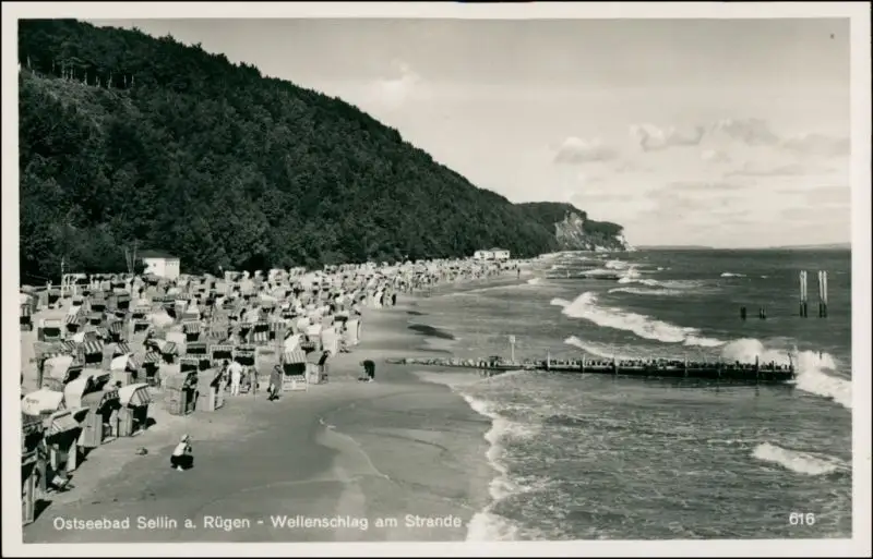 Ansichtskarte Sellin Häuser - Wellenschlag am Strande 1929