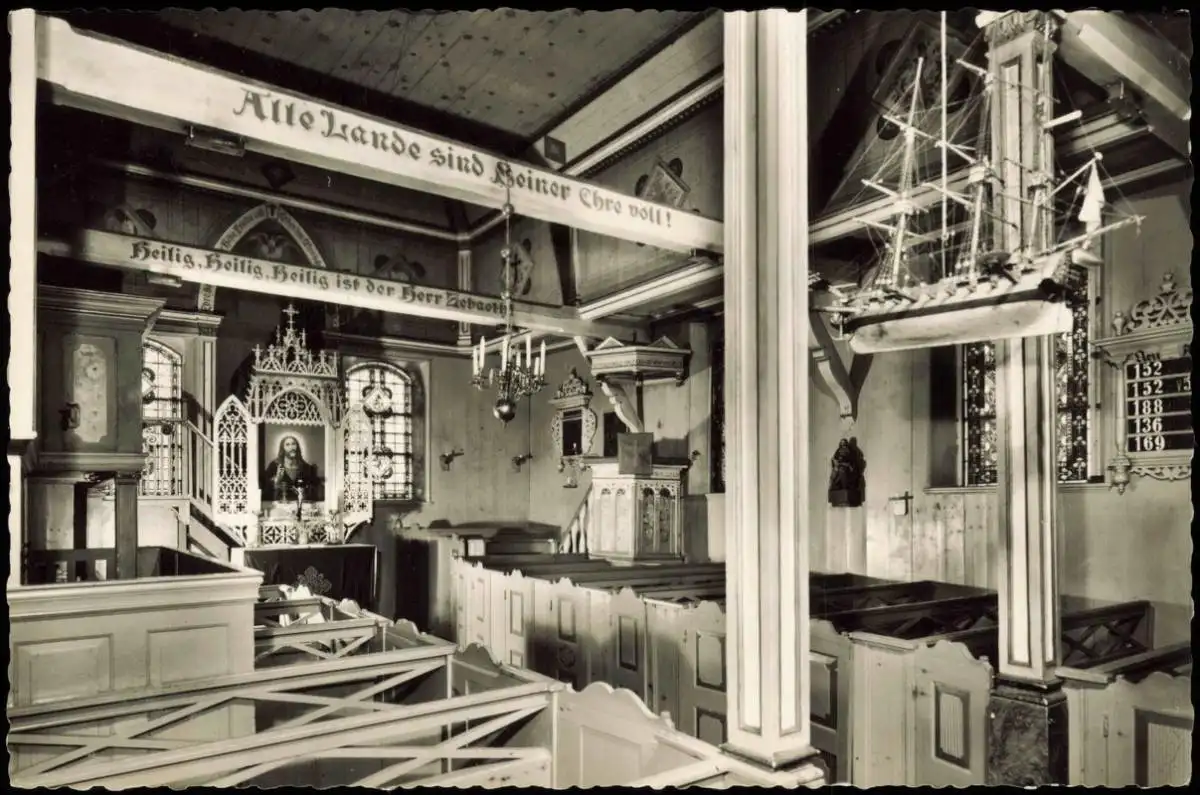 Ansichtskarte Spiekeroog Inselkirche - Schiff - Altar 1963