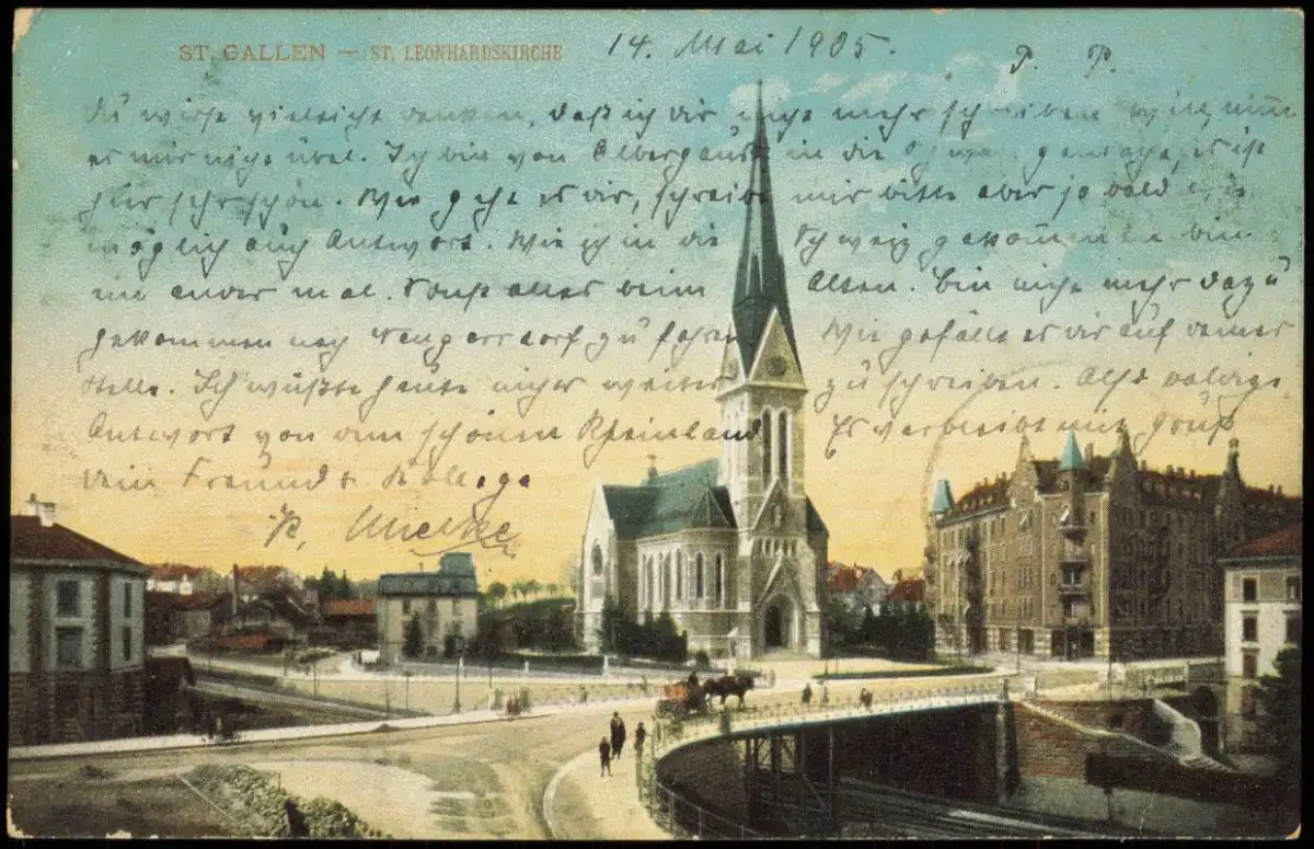 Ansichtskarte St. Gallen Straßenpartie an der Leonhardskirche 1905