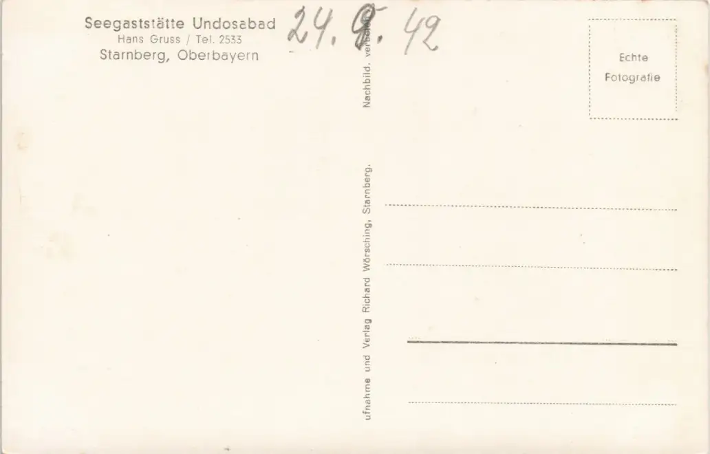 Ansichtskarte Starnberg Seegaststätte Undosabad - Bemalung 1942