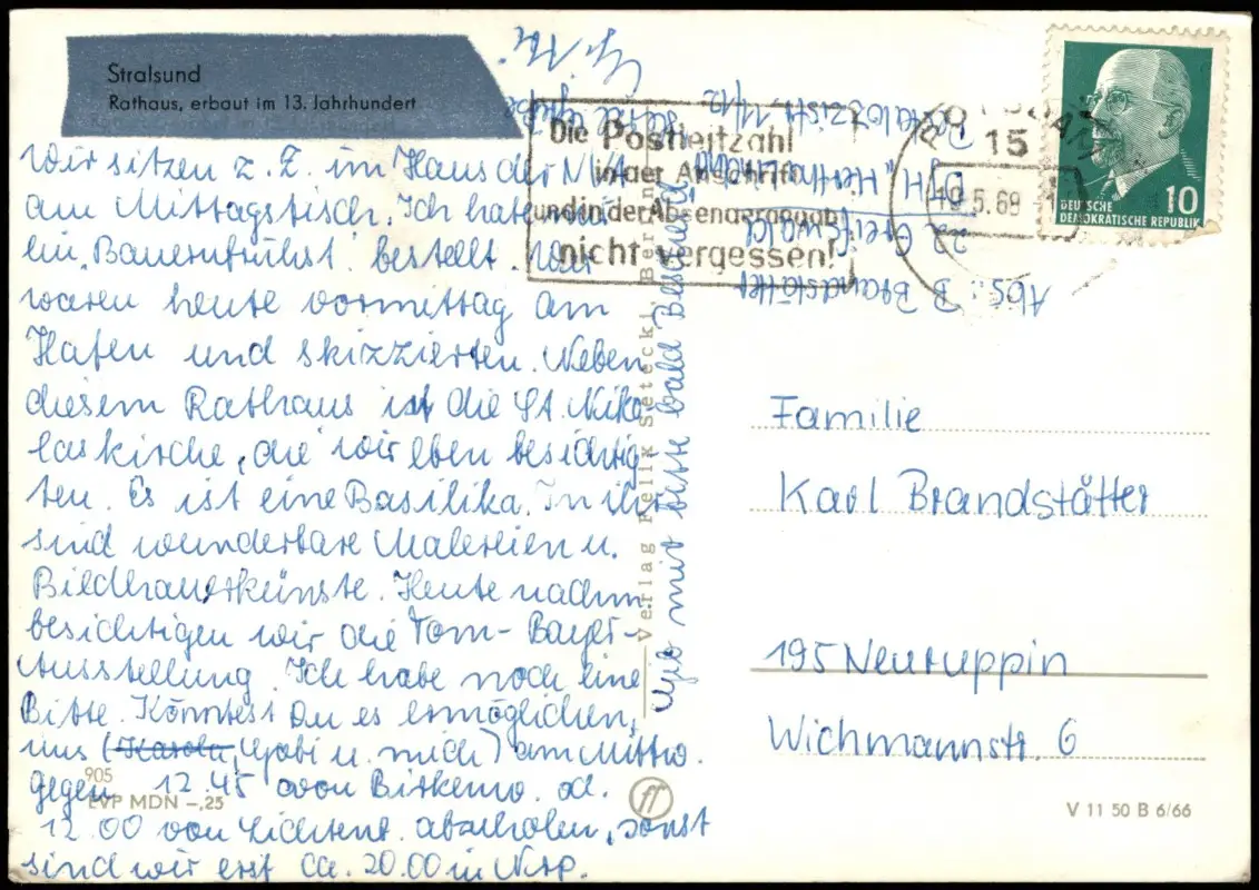 Ansichtskarte Stralsund Rathaus 1966