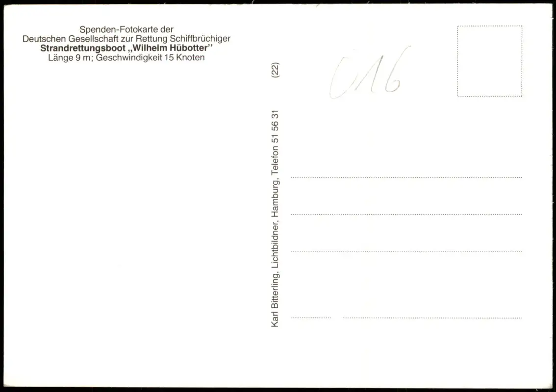 Ansichtskarte Strandrettungsboot "Wilhelm Hübotter" 1992