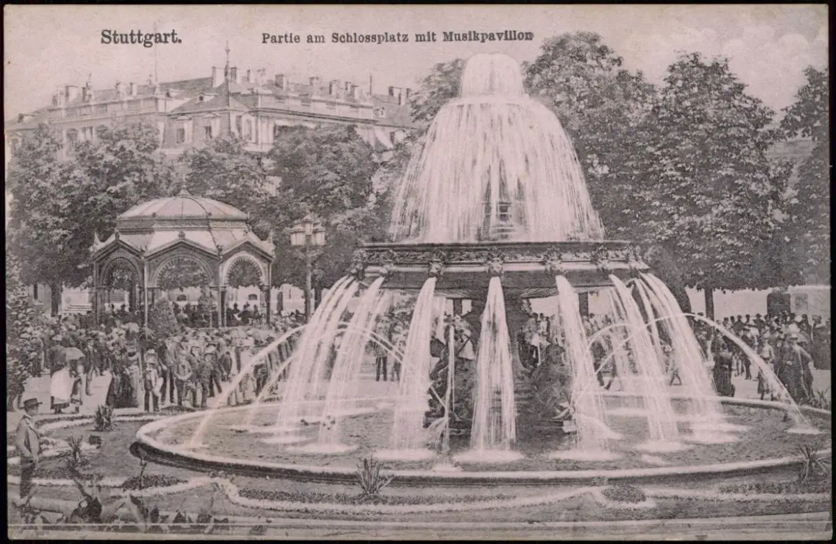 Ansichtskarte Stuttgart Partie am Schlossplatz mit Musikpavillon 1910