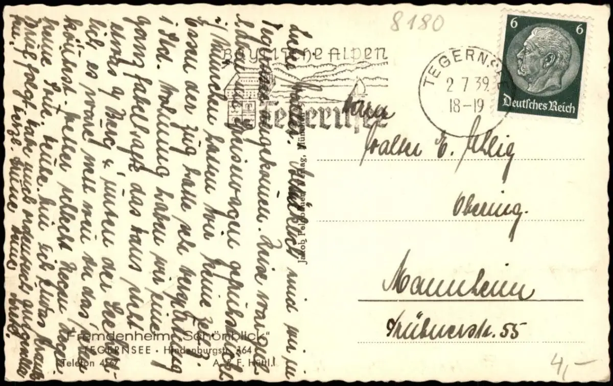 Ansichtskarte Tegernsee (Stadt) Panorama-Ansicht Blick gegen Hirschberg 1939