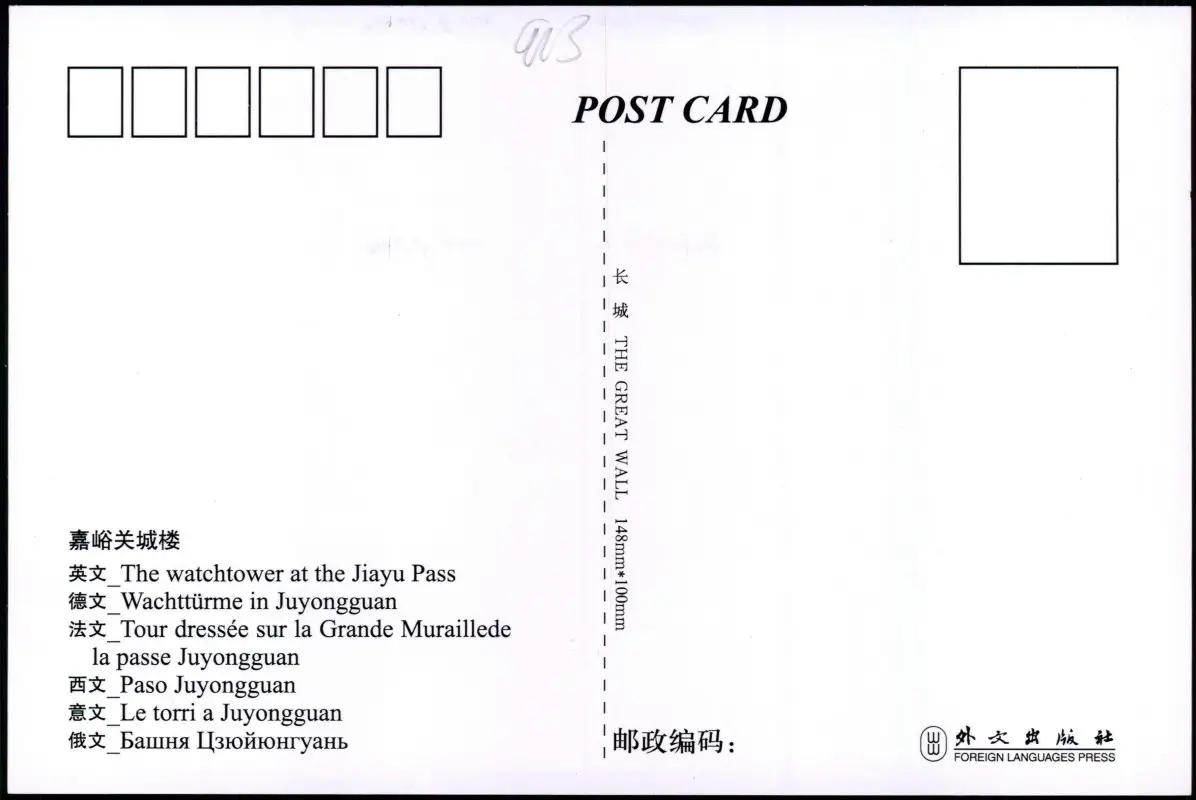 Ansichtskarte The watchtower at the Jiayu Pass China Great Wall 1988