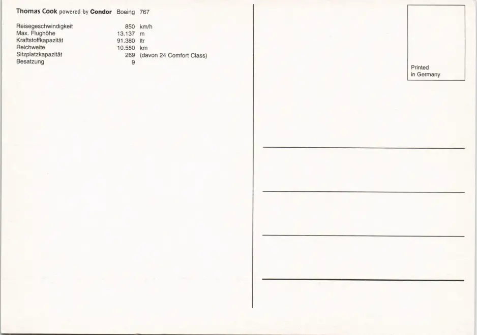 Ansichtskarte Thomas Cook Reise-Flieger Flugzeug Condor Boeing 767 2000