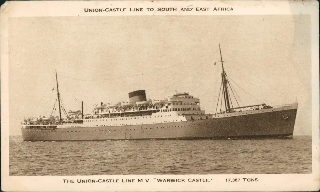 Ansichtskarte UNION-CASTLE LINE M.V. WARWICK CASTLE Ship Photo Postcard 1950