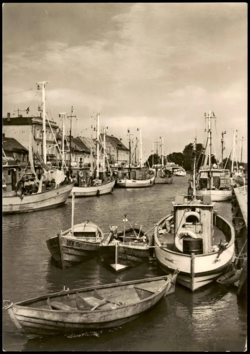 Ansichtskarte Ueckermünde Hafen, Fischerboote 1973