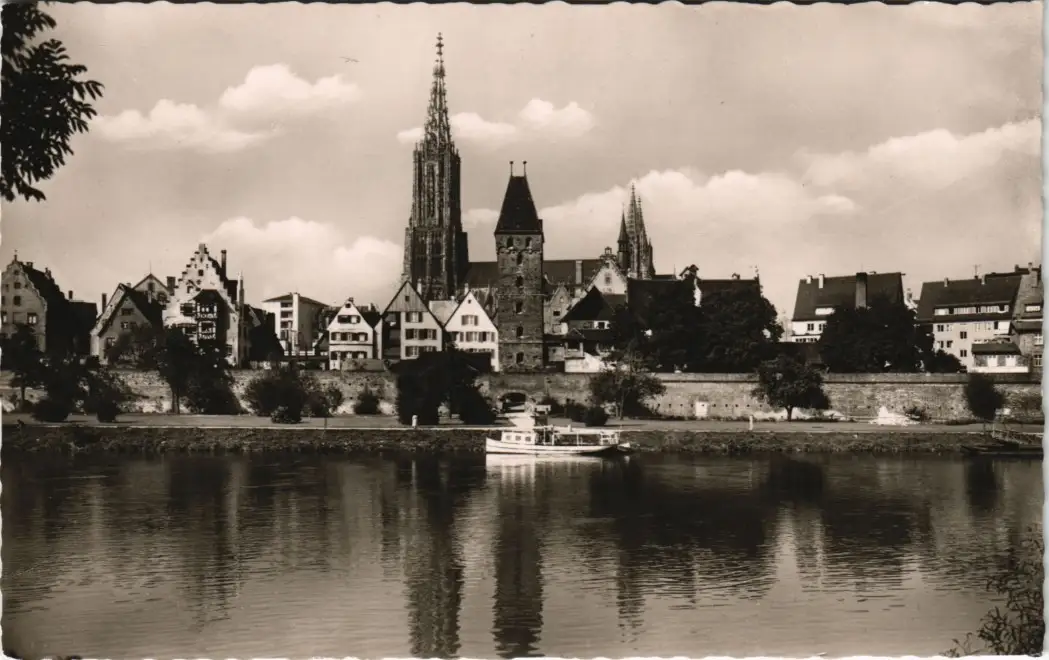 Ansichtskarte Ulm a. d. Donau Panorama-Ansicht, Partie a.d. Donau 1956