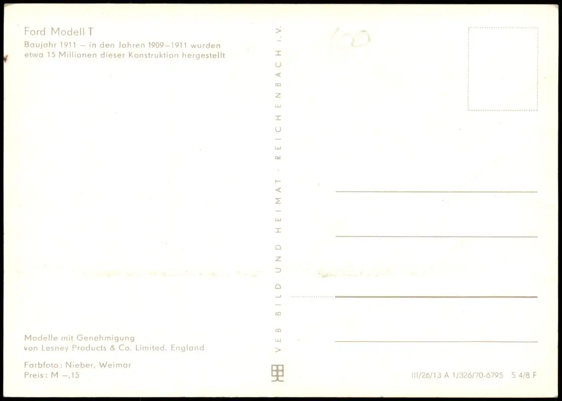 Ansichtskarte Verkehr/KFZ: Auto Ford Modell T Baujahr 1911 1970