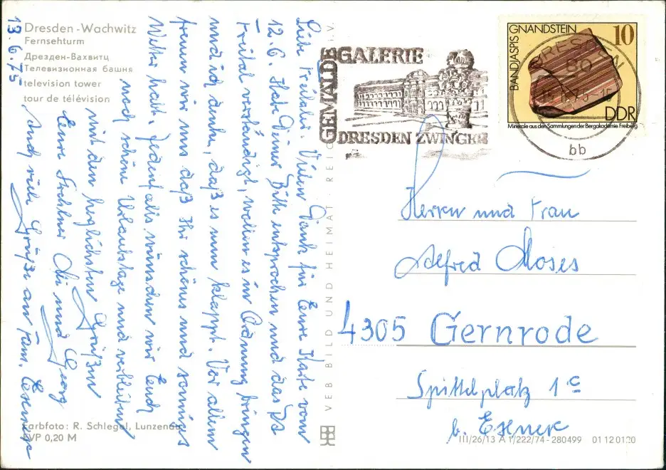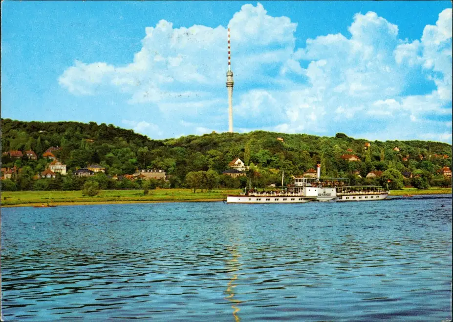 Ansichtskarte Wachwitz-Dresden Fernsehturm, Elbdampfer 1974