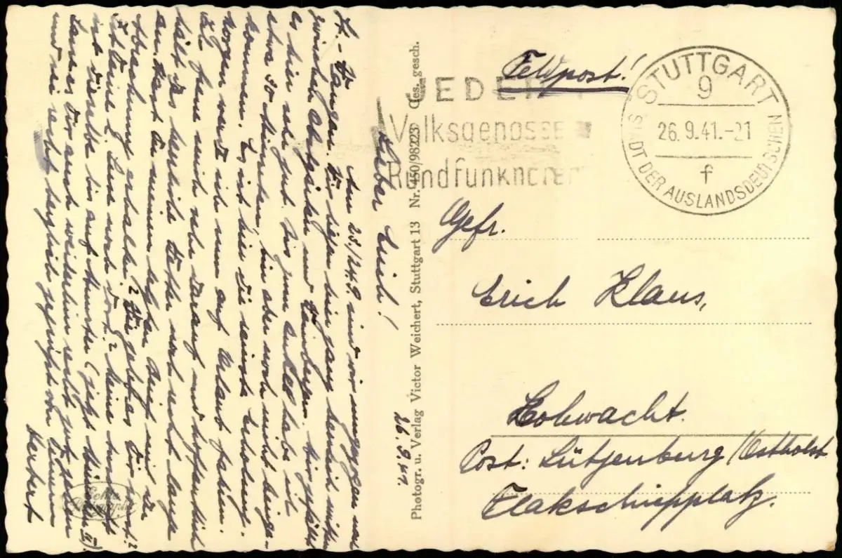 Ansichtskarte Wangen-Stuttgart Untertürkheim 1941 2. Weltkrieg Feldpost
