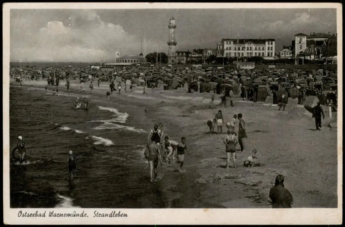 Ansichtskarte Warnemünde-Rostock Strandleben - Leuchtturm 1940