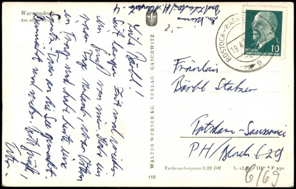 Ansichtskarte Warnemünde-Rostock Strom, Segelboote 1963