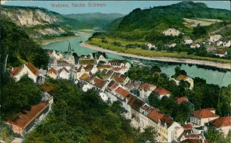 Ansichtskarte Wehlen Blick auf die Stadt 1924