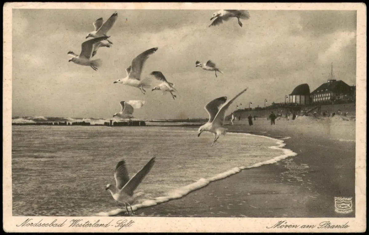 Ansichtskarte Westerland-Sylt Strand Möwen im Flug 1940