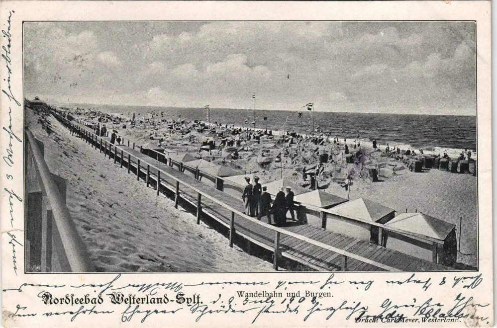 Ansichtskarte Westerland-Sylt Strand, Wandelbahn und Burgen 1903