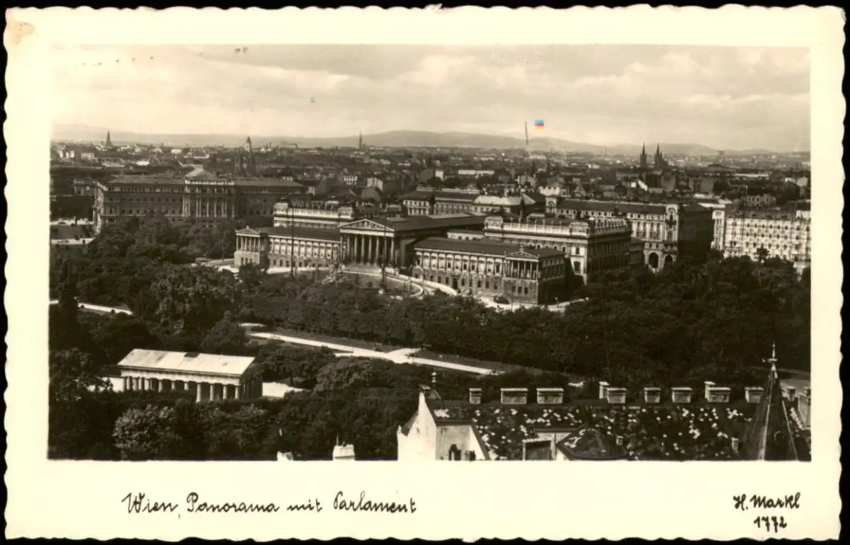 Ansichtskarte Wien Panorama-Ansicht mit Blick zum Parlament 1940