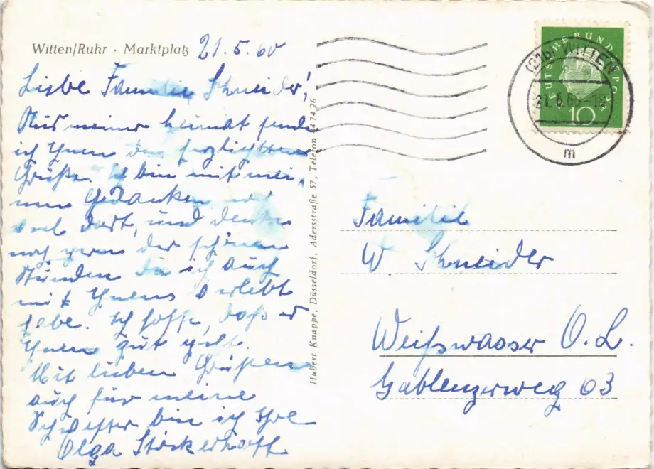 Ansichtskarte Witten (Ruhr) Marktplatz, Bus - Straßenbahn 1960