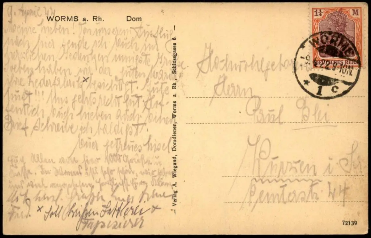 Verlag: A. Wiegand, Domdiener, Worms a. Rh.