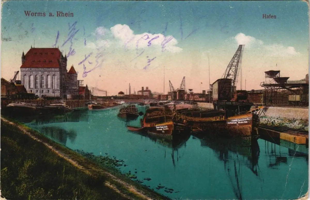 Ansichtskarte Worms Hafen, Kräne 1917 gel. Feldpost