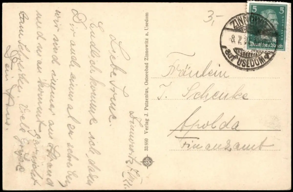 Ansichtskarte Zinnowitz Strand, Villa - Seebrücke 1927