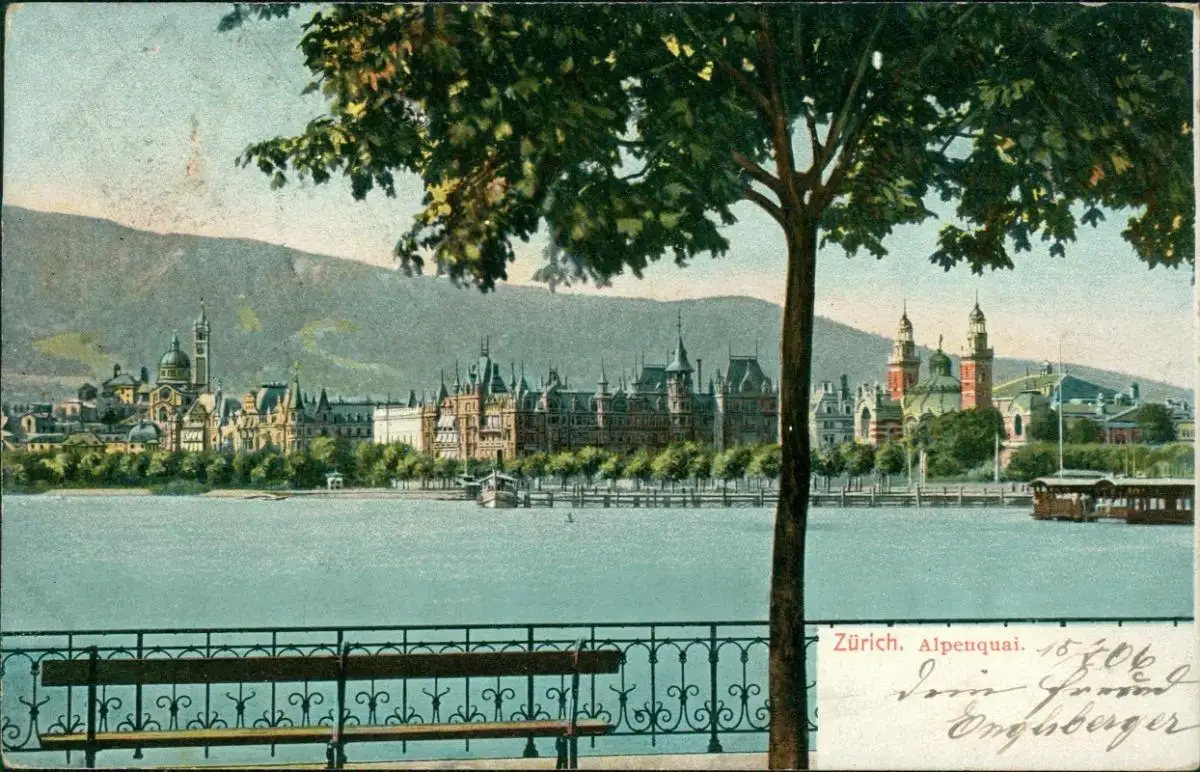 Ansichtskarte Zürich Stadtteilansicht Partie am Alpenquai 1906