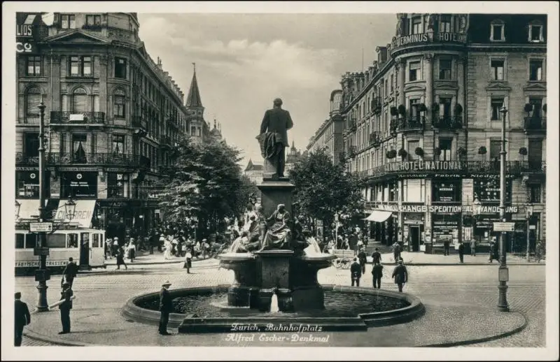 Ansichtskarte Zürich Straßenbahn - Bahnhofsplatz 1930