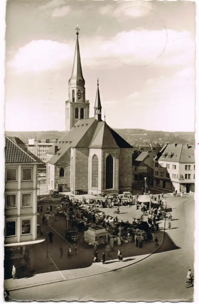 Ansichtskarte Zweibrücken Alexanderkirche, Markttreiben - Verkaufswagen 1960
