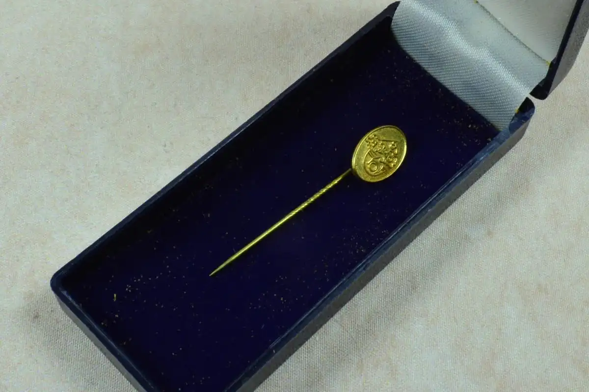 Vintage,Anstecknadel,Deutsche, Post,8K, Gold,Posthorn,spätes, 20., Jahrhundert,Sammlerstück,Vintage-Schmuck,Post-Memorabilien