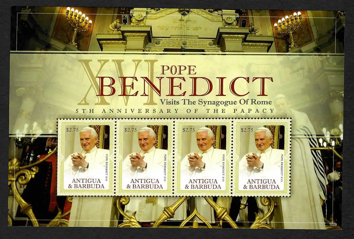 Antigua: Papst Bendedict XVI, 5. Jahrestag Pontifikat, Block, postfrisch